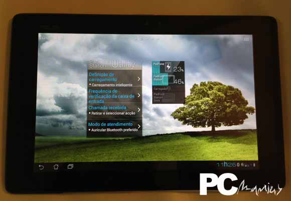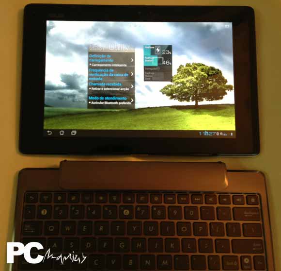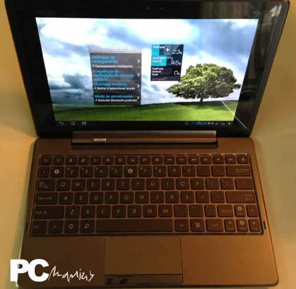 Como já tínhamos visto na nossa análise ao Transformer, a docking station que continha o teclado e o rato, e que na qual o tablet encaixava, fazia bastante mais do que aquilo que era imediatamente perceptível. Na realidade, esta base acrescentava uma bateria adicional ao tablet, capaz de aumentar a sua autonomia, bem como duas portas USB e um leitor de cartões de memória.