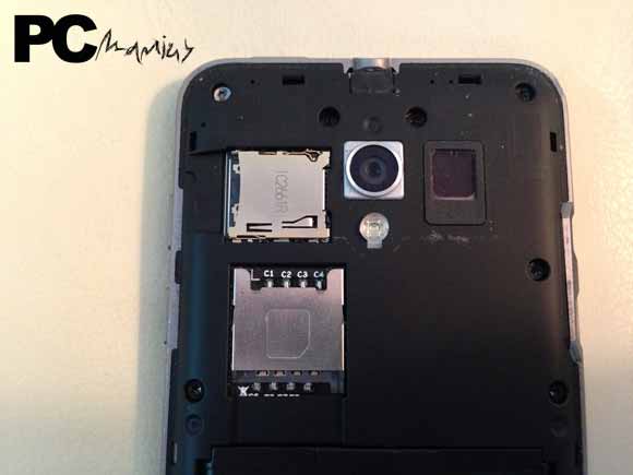 Curiosamente colocando este telefone lado a lado com um iPhone 5, apercebemos-nos que as suas dimensões são bastante aproximadas, sendo contudo que este telefone é maior, mais largo e mais grosso, mas não por muito. Mas curiosamente, espessura excluída as restantes dimensões, apesar de maiores, são-no apenas o necessário para conter o seu ecrã de 4,3 polegadas, 0,3 polegadas superior ao do iPhone. Para sermos específicos, as dimensões exactas do telefone são 128 x 65.4 x 9.2 mm.