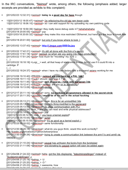 Eu li aqui num site francês que eles utilisavam as consolas como escutas, mas tambem falam que ha acoes judiciárias em curso contra alguns hackers, o que estas informações poderao jogar contra a propria nintendo